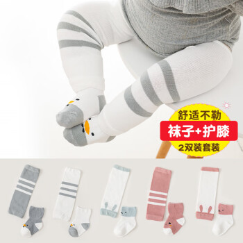 Longsha Baby Socks Spring and Autumn Cotton Newborn Baby Knee Splitting Butler Long Tube Socks Autumn and Winter Baby Knee Pads Leggings Socks Cover White Grey Stripes Spring and Autumn Two Piece Set M Suggested 1-3 Years Old [Image Price Brand Quota...