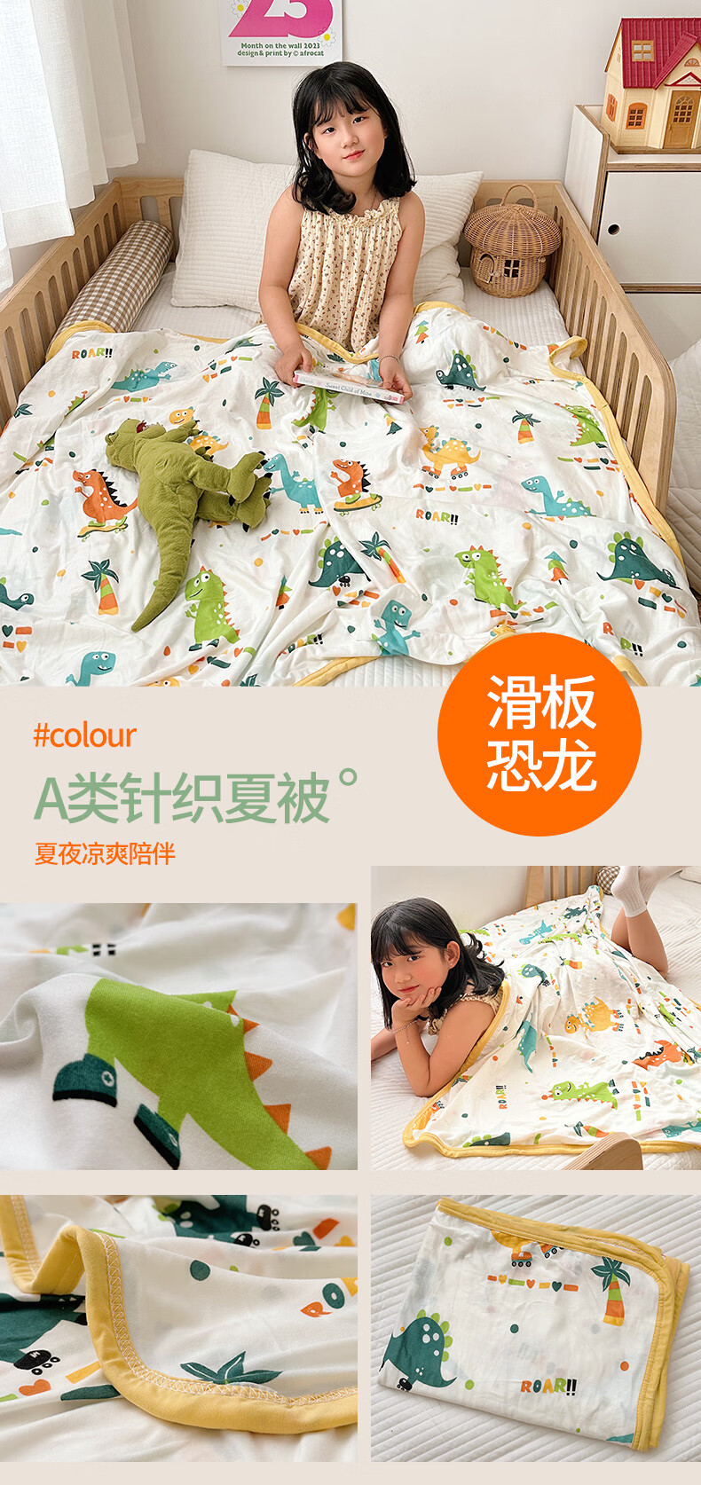 Le Xiu Baby Ice Silk Blanket, Newborn Baby Quilt, Summer Thin Children's Small Cover, Blanket, Air Conditioning Quilt, Kindergarten Baby Sleeping Bag, Love Dinosaur [Class A Cool Knitted Blanket] -150